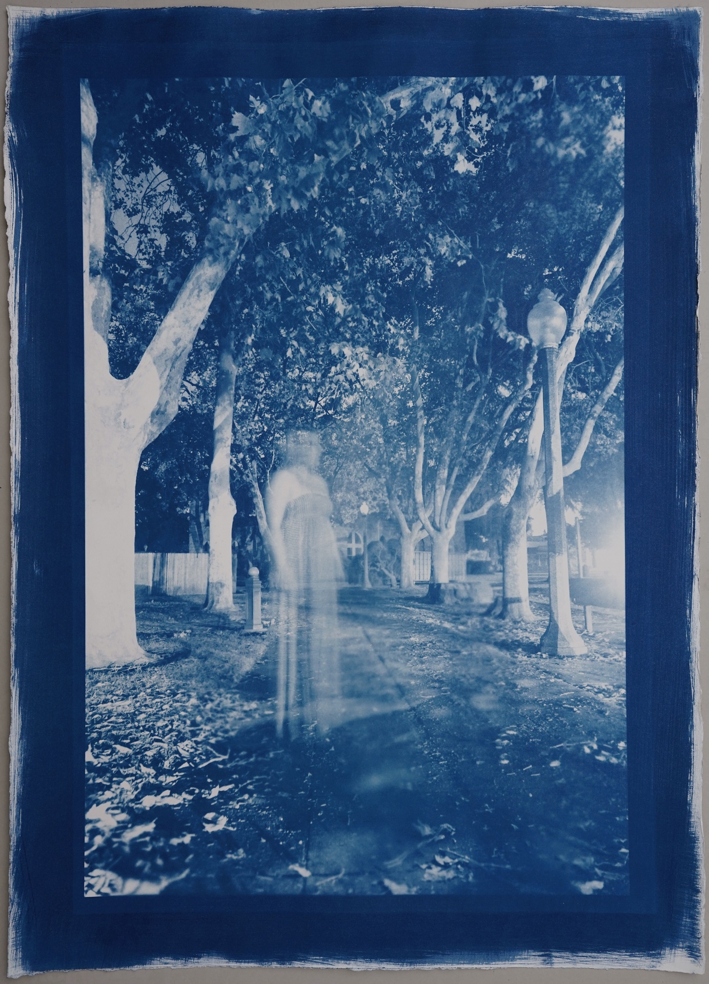 Eden’s work is an exploration of the delicate nature between light and shadow, two forces that shape our perception of the world. She seeks to evoke the mystery of light’s ability to both reveal and conceal life around us. Through the medium of photography, she invites viewers to explore the delicate interplay between illumination and shadows. Her work is multidisciplinary and combines the use of digital photography with aspects of film photography and incorporates the handmade mark in her artworks. Her photographs taken after dark utilize available natural light. Her focus is on her travels along Northern California photographing the images that you see in the exhibition on display, from downtown Sonoma to the surrounding fields.