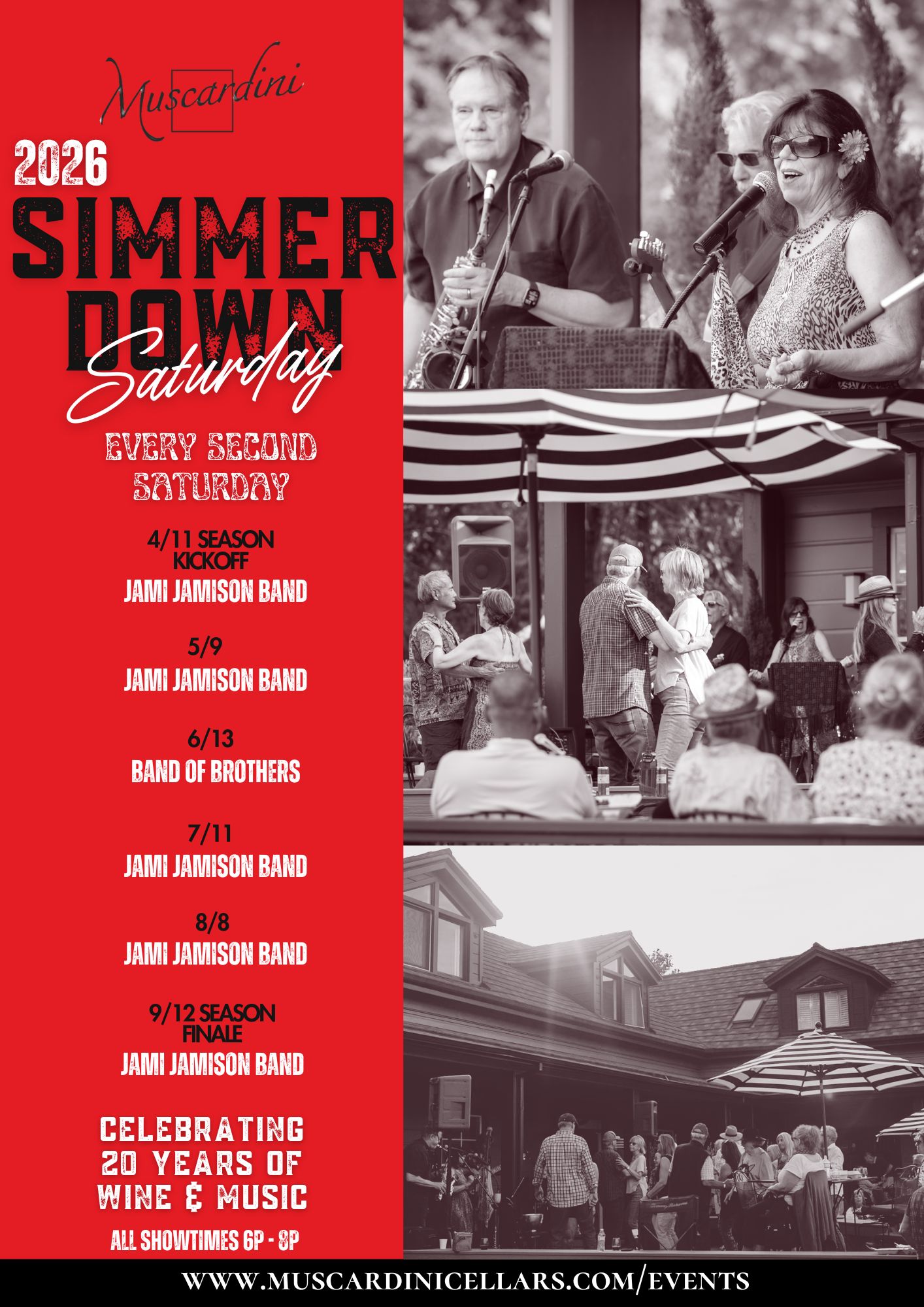 Join us on the second Saturday of every month at Muscardini Cellars for our 2026 Simmer Down Saturday Live Music Series!